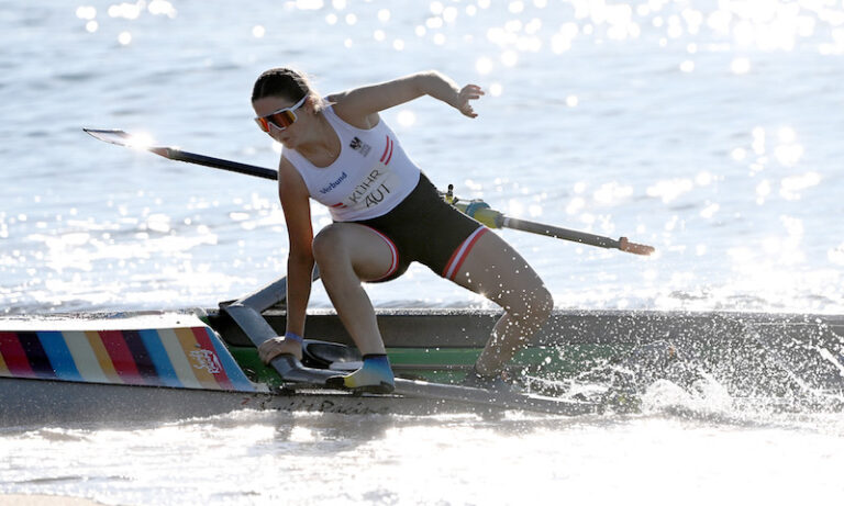 Wie schon bei den Europameisterschaften sind neben den Athletinnen und Athleten der Allgemeinen Klasse auch zwei Junioren-Einer (Marlene Kühr und Vincent Schreiber) und der Junioren-Mixed mit Caroline Schwendinger und Nikolas Roidmayer mit am Start. Vincent Schreiber konnte sich mit Rang fünf im ersten Zeitlauf souverän für das Achtelfinale (Freitagnachmittag) qualifizieren. Und auch Caroline Schwendinger und Nikolas Roidmayer zogen mit Rang sieben im ersten Zeitlauf direkt ins Achtelfinale ein. „Der Junioren-Einer und der Junioren-Mixed haben sich wie erwartet sehr souverän direkt fürs Achtelfinale qualifiziert. Marlene hatte bisschen Pech mit den wechselnden Bedingungen, hier haben sich die Bedingungen während des Wettkampfes zu ihren Ungunsten gedreht, aber im Timetrial 2 wird das sicher passen“, sagt Traer. Marlene Kühr verpasste nämlich mit Platz zehn den direkten Einzug ins Achtelfinale knapp und hat morgen Vormittag im zweiten Zeitlauf noch die Chance sich ihren Platz im Achtelfinale zu sichern.